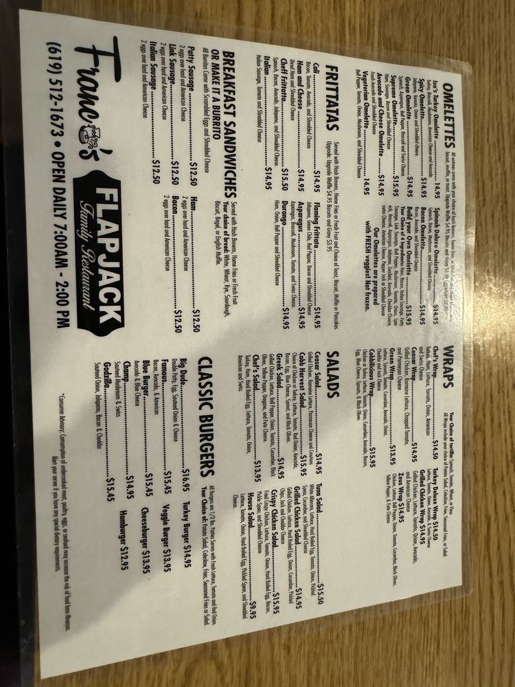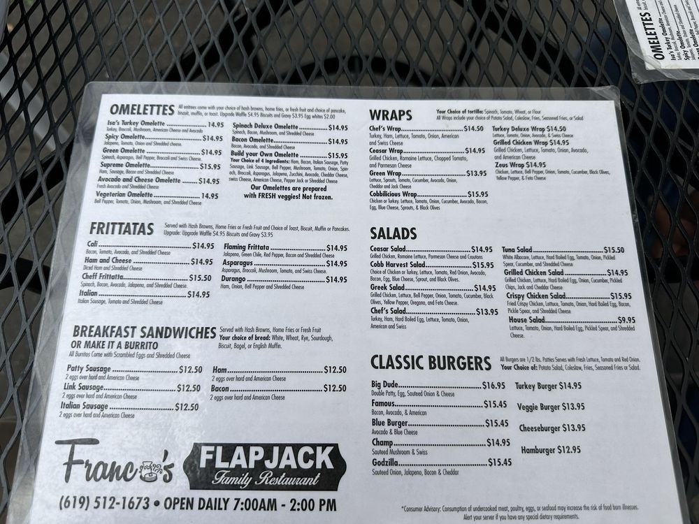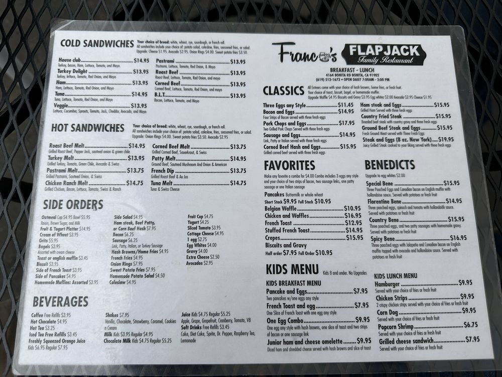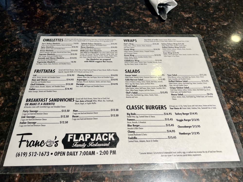 Franco's Flapjack Family Restaurant Menu
